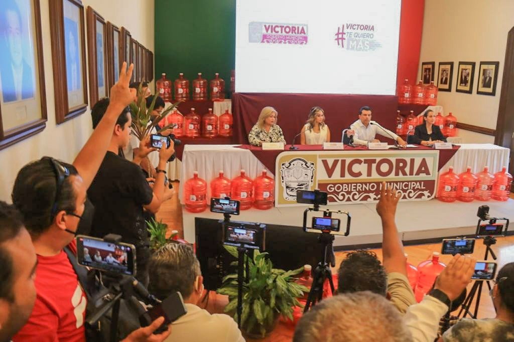 Cd. Victoria.- Ante la apremiante necesidad de dotar de agua apta para el consumo humano en colonias vulnerables de la ciudad, el alcalde de Victoria, Eduardo Gattás Báez, presentó este lunes el programa de Abastecimiento de Agua y Alimentos garantizando en una primera etapa el líquido para 500 hogares victorenses.