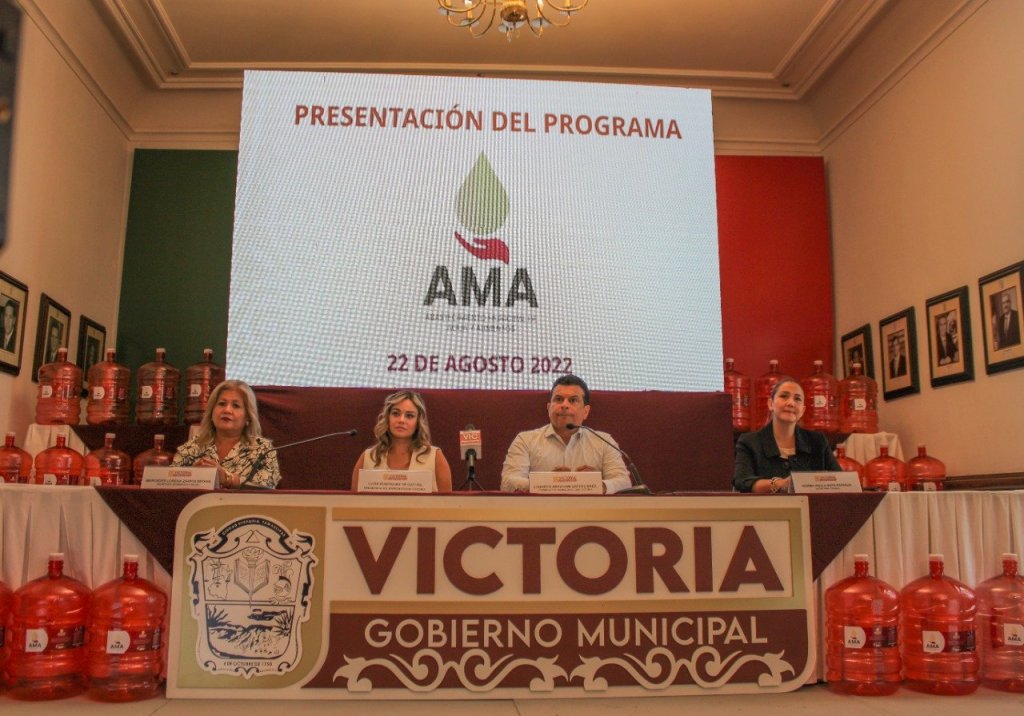 Anunció que el primer centro AMA inicia operaciones este miércoles 24 de agosto y estará ubicado en la colonia Vamos Tamaulipas con capacidad de entregar 300 garrafones diarios en horario de 8:00 de la mañana a 8:00 de la noche atendiendo a un padrón de 500 familias a quienes se les brindará dos rellenos de garrafones gratis.