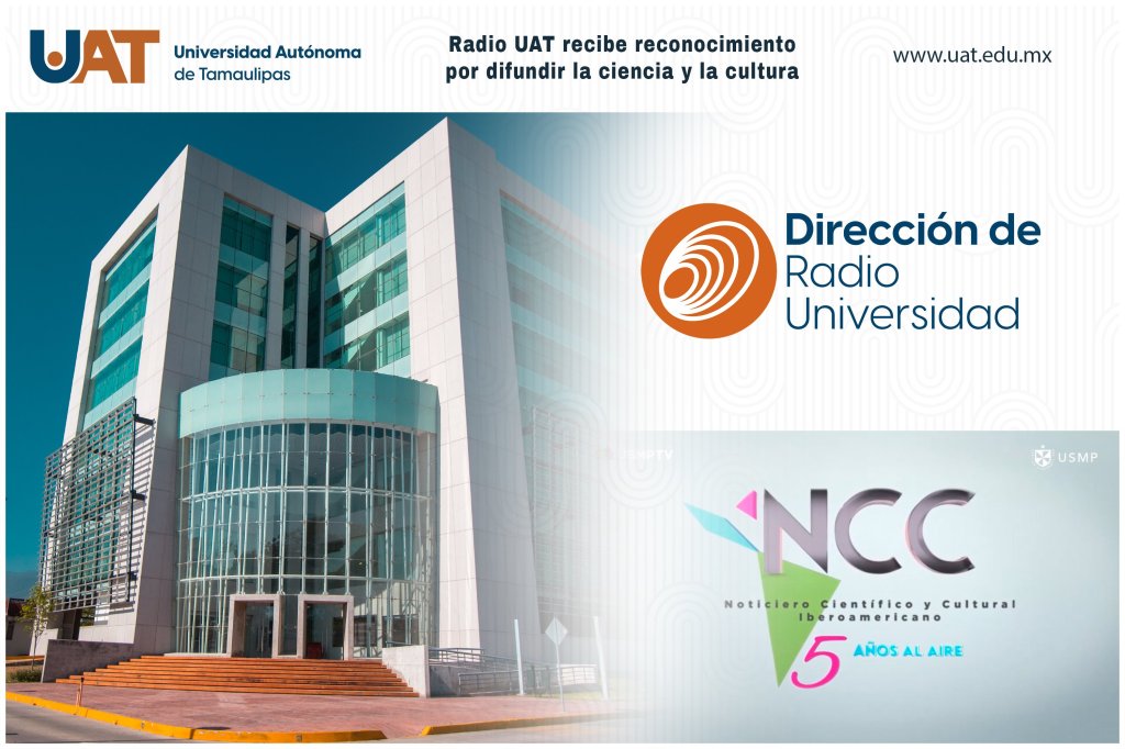 La Universidad Autónoma de Tamaulipas a través de Radio UAT recibió un reconocimiento de parte del Noticiero Científico y Cultural Iberoamericano (NCC) de la Asociación de Televisiones Educativas y Culturales Iberoamericanas (ATEI), por ser uno de sus socios que, a lo largo de un año, ha difundido el mayor número de colaboraciones radiofónicas sobre ciencia, tecnología y cultura.