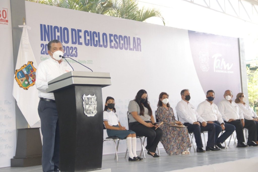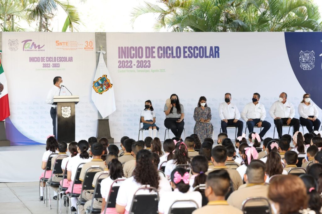 Durante su mensaje en la Escuela Secundaria General Num. 1 “Adolfo Ruíz Cortines”, reconoció el respaldo del Gobernador del Estado, Francisco García Cabeza de Vaca, para el fortalecimiento de la escuela en Tamaulipas y de los trabajadores de la educación.