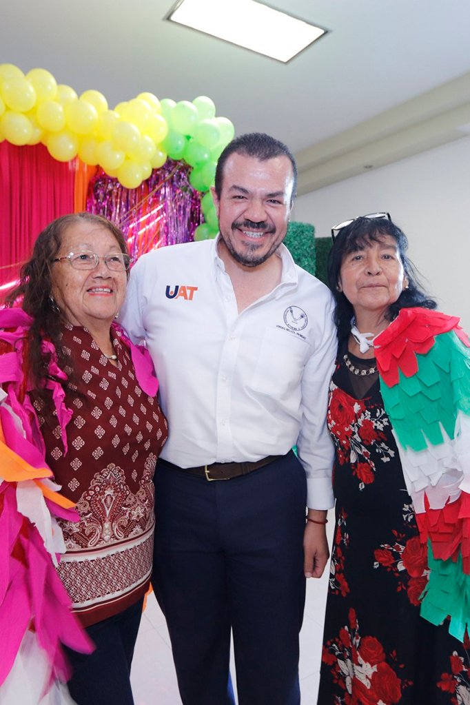 En el evento realizado este 30 de agosto, el Rector Guillermo Mendoza, acompañado de su esposa, la C. P. Imelda Sustaita de Mendoza, miembro de honor del programa UAT U-NIDO, destacó la importancia que representa para la Universidad impulsar el programa de atención al adulto mayor por medio del equipo multidisciplinario de servicio social.