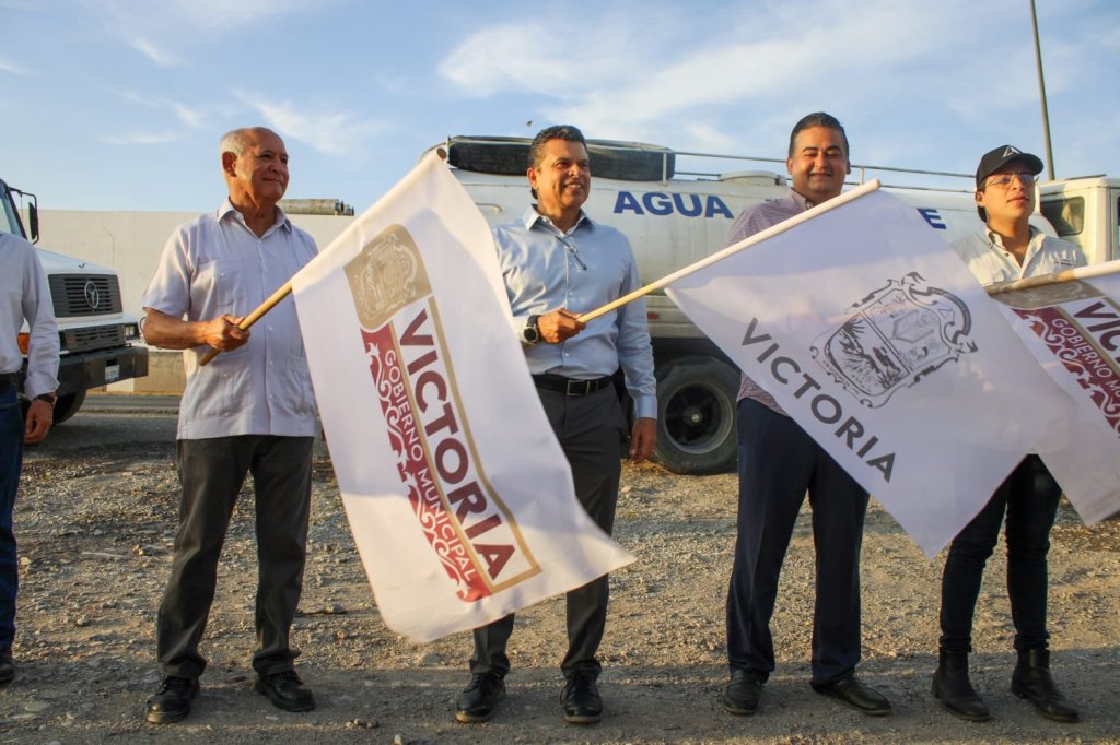 Cd. Victoria.- En el peor momento que se vive por la sequía y la falta de agua en 6 mil hogares de las partes altas de Victoria, el alcalde Eduardo Gattás Báez dio el banderazo de salida a 18 camiones-cisternas que diariamente trabajan en las labores de reparto para estos sectores.