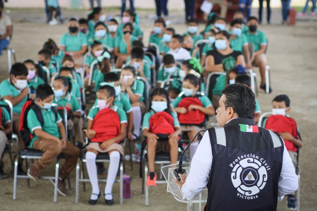 En este regreso a clases, DIF y el Gobierno de Victoria han entregado de manera gratuita miles de paquetes de útiles escolares en instituciones de educación básica, este jueves 8 de septiembre fue el turno de la escuela Mártires de la Revolución, del ejido Congregación Caballeros donde niñas y niños del plantel recibieron mochilas escolares.
