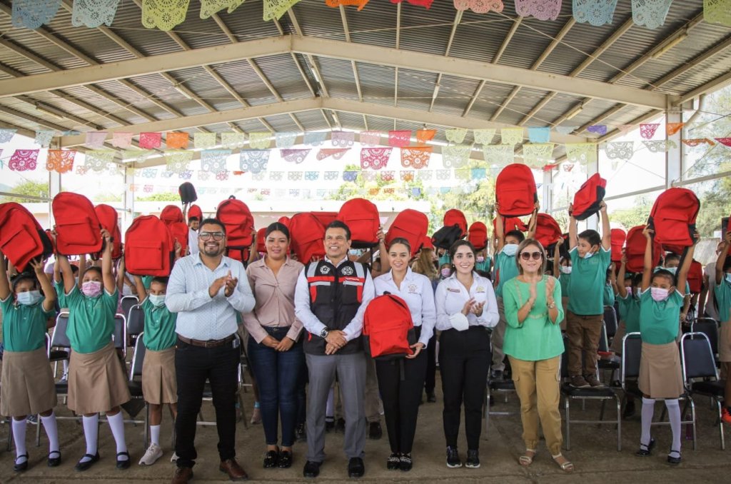 Cd. Victoria, Tamaulipas. – En apoyo a la educación y economía de padres de familia, la presidenta del Sistema DIF Victoria, Lucía Rodríguez de Gattás y el alcalde Eduardo Gattás Báez, entregaron mochilas escolares a alumnos de la escuela de «Mártires de la Revolución» del ejido Congregación Caballeros.
