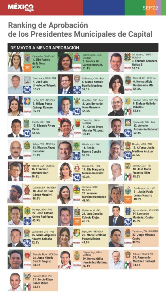 Cd. Victoria, 19 de septiembre. – Por segundo mes consecutivo, el alcalde de Victoria Eduardo Gattás Báez se mantuvo en los primeros lugares del ranking de aprobación de Presidentes Municipales de Capital en la encuesta de septiembre, publicada por la plataforma México Elige.