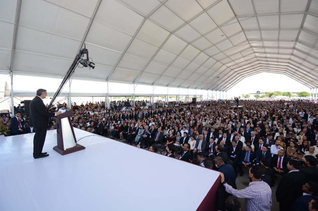 Al dirigirse al Secretario de Gobernación, Adán Augusto López Hernández, quien asistió con la representación del presidente de la República, Andrés Manuel López Obrador, el Gobernador Villarreal Anaya se comprometió a sincronizar esfuerzos con los tres órdenes de gobierno.