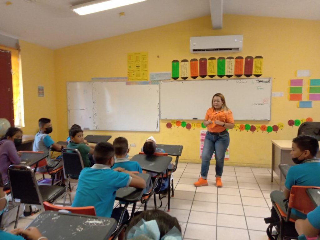 Ciudad Victoria, Tamaulipas.- La activista social en pro de las mujeres, niñas, niños y adolecentes Any Saldaña realizó diálogos de sexualidad, enfermedades de transmisión sexual, embarazos precoz, así como violencia familiar a alumnos de la primaria Miguel Hidalgo.