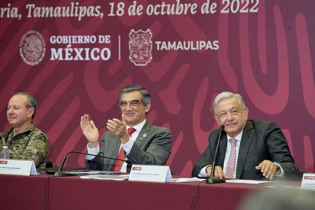 Cd. Victoria, Tamaulipas. 18 de octubre de 2022. El gobernador Américo Villarreal aseguró que Tamaulipas será un referente positivo de la patria y valoró el apoyo del presidente de México Andrés Manuel López Obrador, quien este martes asistió personalmente a la presentación del Plan de Apoyo a Tamaulipas.