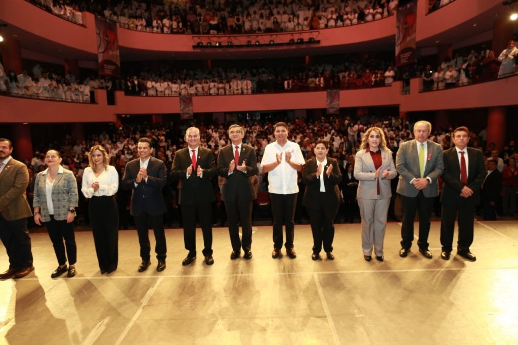 En el teatro ‘Amalia G. Caballero de Castillo Ledón’, ante la comunidad médica, estudiantes de medicina, especialistas en nutrición, en fisioterapia, enfermeras y enfermeros, el jefe del Ejecutivo estatal, reiteró que este es el inicio de un gran trabajo para poder aliviar los problemas que aquejan a la sociedad. “Cuento con todos ustedes en el aspecto más sensible que es el recuperar la salud de nuestros seres queridos”, mencionó.