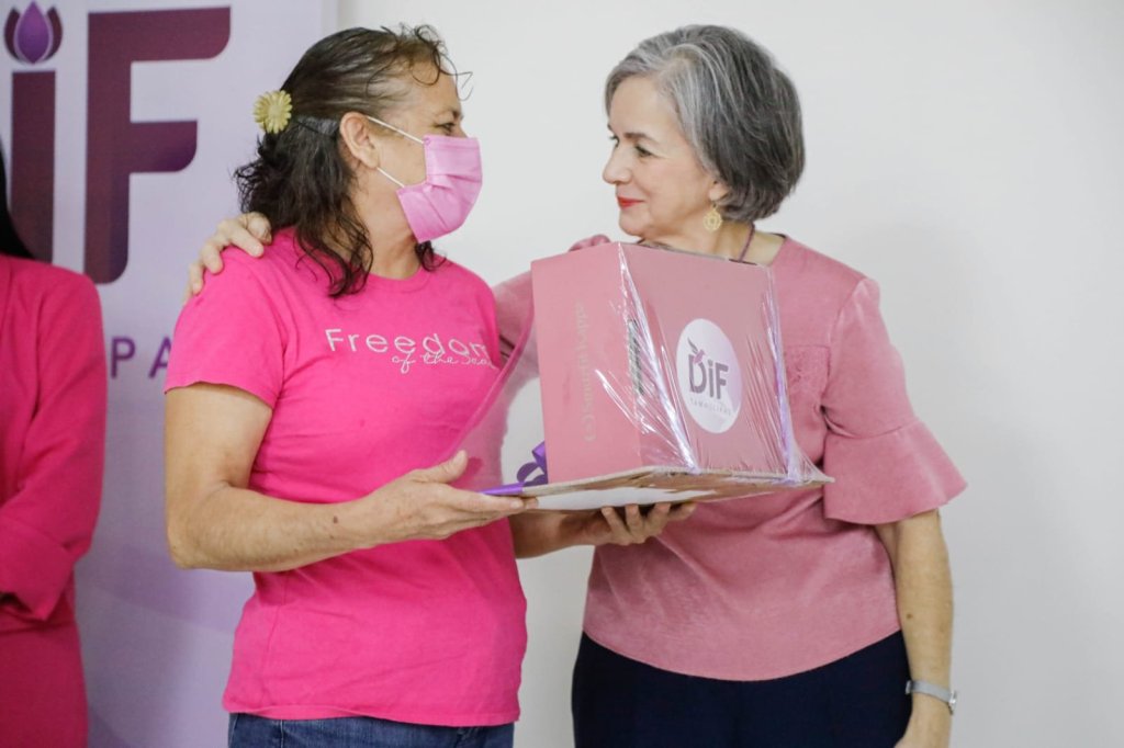 Ahí mismo y de manera personal, la presidenta estatal del DIF, les hizo entrega simbólica de 11 prótesis de mama, a mujeres de los municipios de Bustamante, Padilla y Victoria de esta entidad, y que las requieren como parte de su proceso de recuperación.