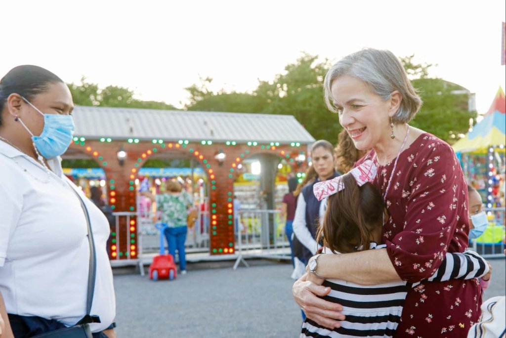 La doctora los abrazó con esa sensibilidad, que va más allá del enfoque formal de las políticas públicas. Ya tenía rato que los chiquitines habían estado disfrutando de los juegos mecánicos. Los cuidados para ellos son al máximo. Cada detalle, cada ángulo es operado con especial esmero. Organización de primera a cargo de la directora de Centros Asistenciales Lucía Luna.