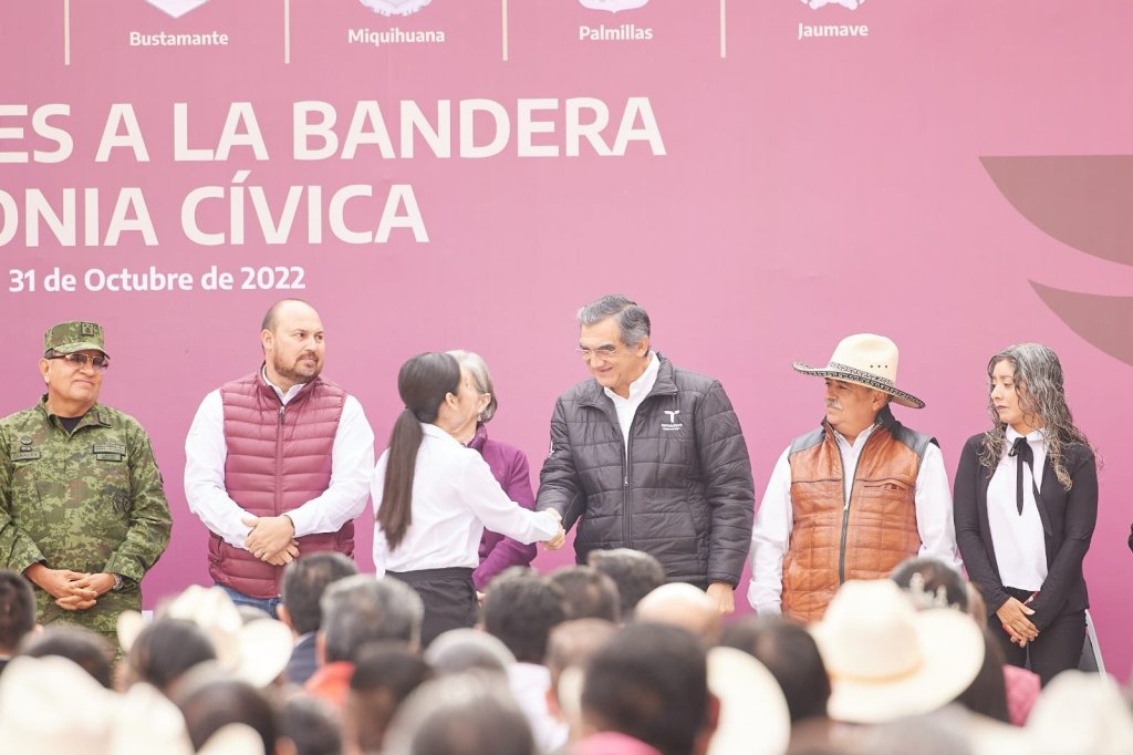 Acompañaron al gobernador en el presídium, los alcaldes de Jaumave, José Luis Gallardo; las alcaldesas de Miquihuana, Gladys Vargas Rangel; de Bustamante, Brisa Verber Rodríguez; así como el secretario general de Gobierno, Héctor Joel Villegas; el secretario de Seguridad Pública, Sergio Chávez García; el general Elpidio Canales Rosas, comandante de la 48a. Zona Militar y el comisario de la Guardia Nacional en Tamaulipas, general Adalberto Rojas Mira.