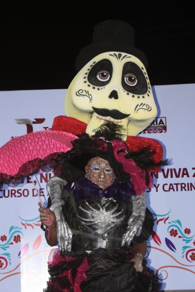 En la categoría clásica de catrinas, se entrego el premio de primer lugar a Adriana Hernández Montoya, mientras que en la de fantasía se adjudico la primera posición a Jorge de la Cruz Martinez que porto una colorida y tradicional vestimenta de Día de Muertos.