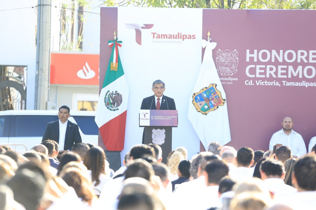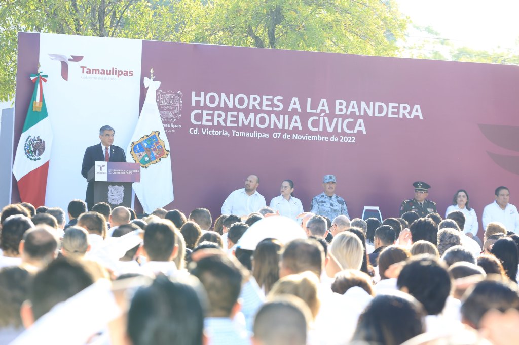«Los valores cívicos son y serán también motores para la gran transformación que ha iniciado en Tamaulipas, ahora, lo único que determina nuestra manera de ser, de ver la realidad y de pensar en el futuro que deseamos es el despertar de la conciencia de la cuarta transformación, que con el presidente Andrés Manuel López Obrador al frente, nos mostró el camino de una nueva cultura política que es solidaria y humanista», mencionó.
