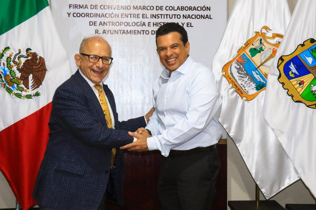 El acuerdo suscrito, se formalizó con el director general del INAH, Diego Prieto Hernández, y la Mtra. Tonantzin Silva Cárdenas, directora del INAH de Tamaulipas, en presencia del secretario del Ayuntamiento por Ministerio de Ley, Roberto Huerta Ramos, y Luis Enrique Peláez, secretario de Desarrollo Urbano y Medio Ambiente.