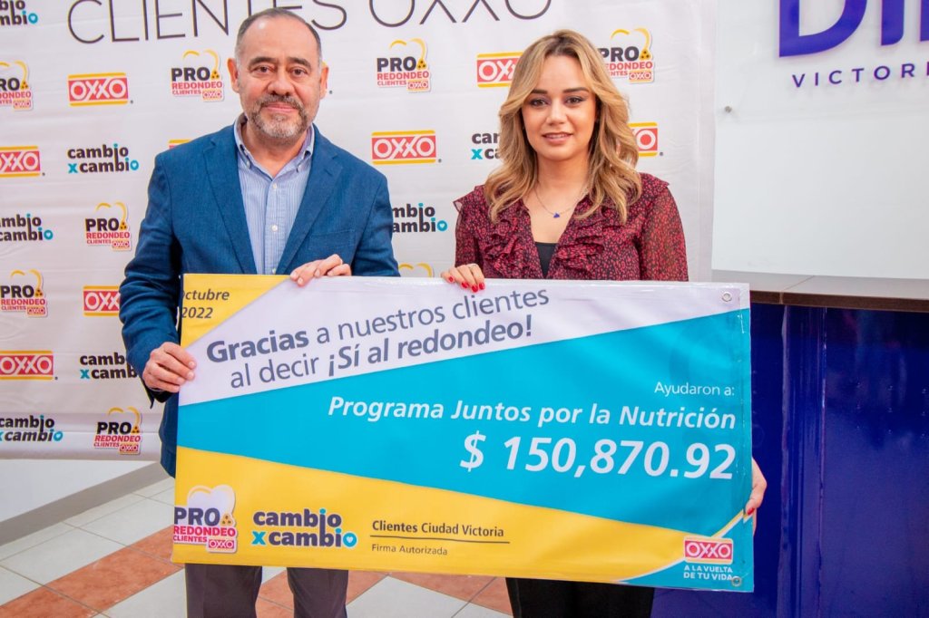La compañía, en su zona Tamaulipas, decidió apoyar con éste programa al sistema DIF Victoria, siendo la gerente de las tiendas Oxxo quien realizará la entrega simbólica de un cheque por la cantidad de 150,870 pesos a la presidenta del Sistema DIF Victoria,