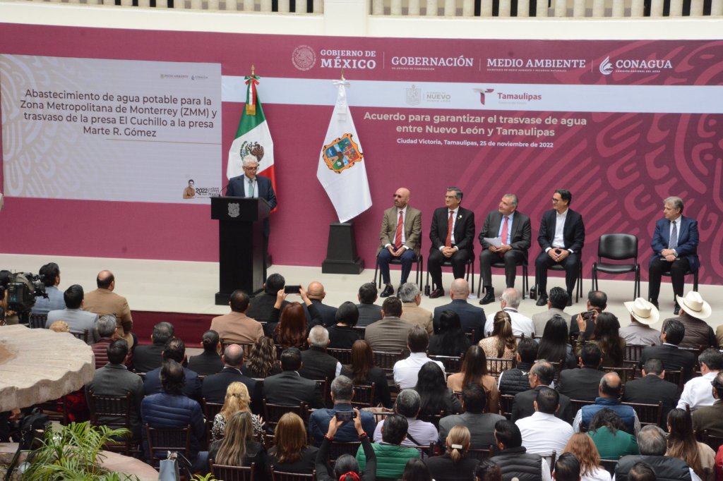 En un hecho histórico celebrado, este viernes a mediodía en el patio Central de Palacio de Gobierno, en ciudad Victoria, el secretario de Gobernación aseguró, ante el gobernador Américo Villarreal Anaya y el representante el gobierno de Nuevo León, Juan Ignacio Barragán Villarreal, que esta jornada es de trascendental importancia, pues nunca antes un gobierno federal había entendido la importancia del agua en la vida cotidiana de los ciudadanos.