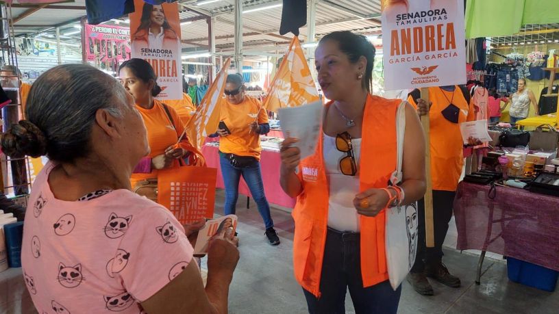 Reynosa, TAM.- Andrea García García candidata al Senado por Movimiento Ciudadano, sigue recorriendo el estado.