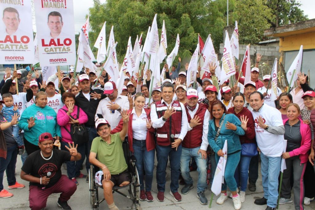 De la mano de su esposa Lucy de Gattás, continuó su caminata hasta llegar a la colonia Unidad Modelo donde un grupo de vecinos ya lo esperaba para recibirlo y agradecer el rastreo y nivelación de calles, envío de pipas para abasto de agua y apoyos alimentarios.