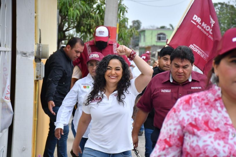 Aldama.- La candidata a senadora por Morena, Olga Sosa Ruíz recorrió las calles de Aldama, una población de vocación ganadera y agrícola, a la que acudió para acompañar en sus actividades a Mimí Sosa candidata a presidenta municipal, así como Blanca Narro quien es candidata a diputada federal, Alberto Moctezuma candidato a diputado local y en esta ocasión también asistió su compañero de fórmula JR Gómez Leal.
