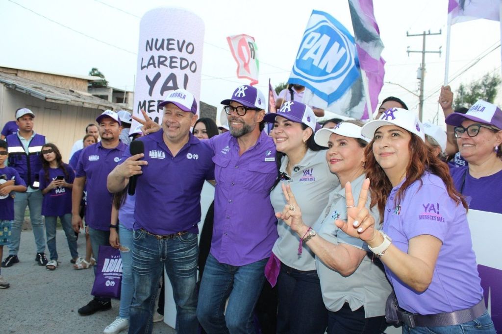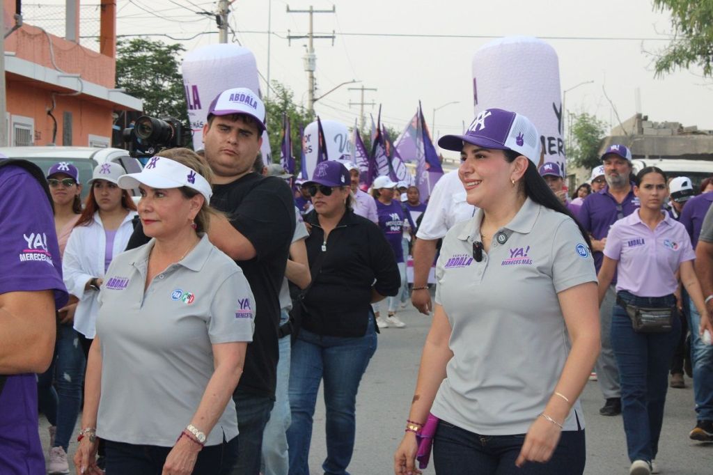 NUEVO LAREDO, Tam.- Entre calles llenas de baches, banquetas con escombro y basura derramándose de los contenedores en la colonia “Manuel Cavazos Lerma” camina Yahleel Abdala Carmona, candidata de la coalición PAN-PRI “Fuerza y Corazón por Tamaulipas”, rodeada de sus brigadistas que bailan, vitorean y agitan banderines al ritmo de los jingles de campaña.