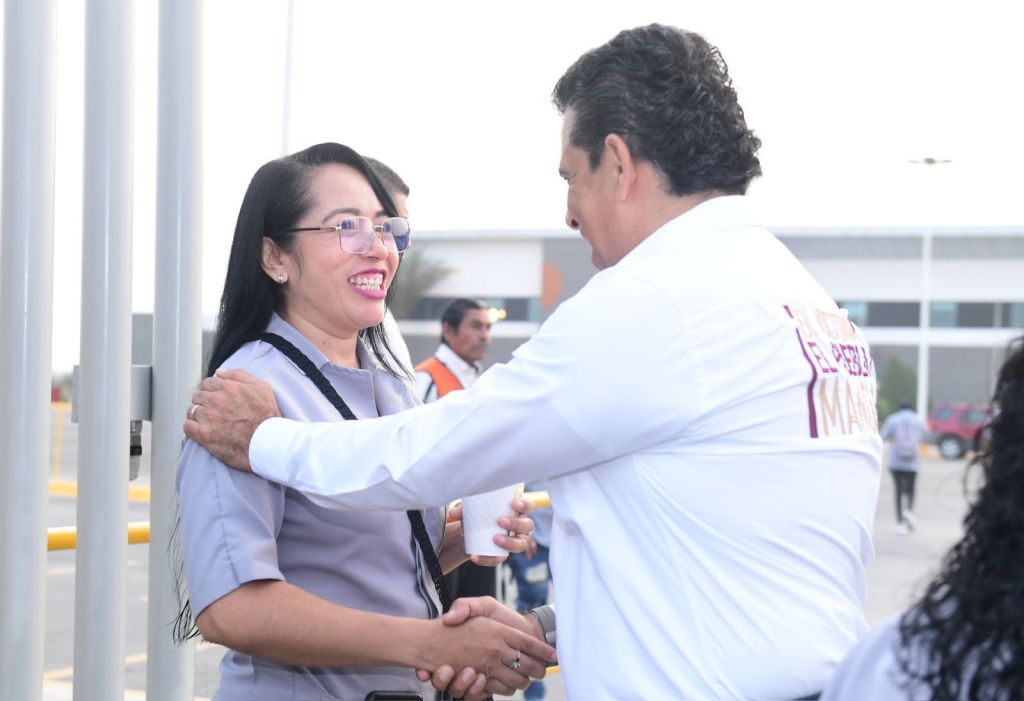 En punto de las 5:30 de la mañana, llegó al acceso principal de la planta para saludar y escuchar inquietudes; resultando de esa interacción la solicitud de reforzar en el entorno de su centro de trabajo la estrategia de seguridad y alumbrado público para inhibir delitos que los afectan.