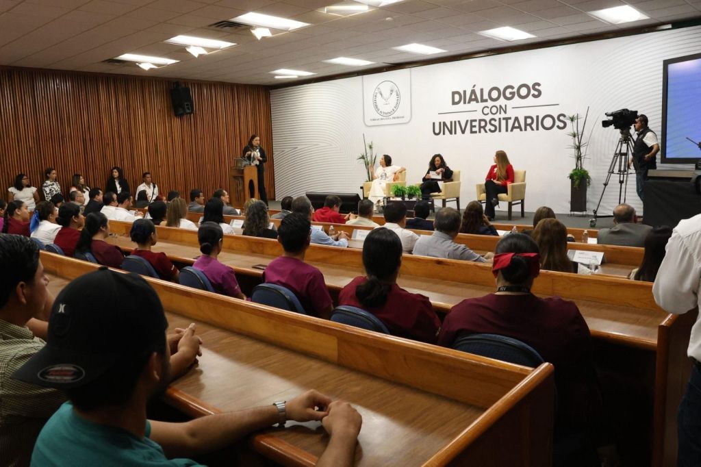 Ciudad Victoria, Tamps.- La candidata por Movimiento Ciudadano al Senado de la República Andrea García García, asistió esta mañana al evento denominado Diálogos con Universitarios organizado por la Universidad Autónoma de Tamaulipas para conversar con los estudiantes y presentar sus propuestas.
