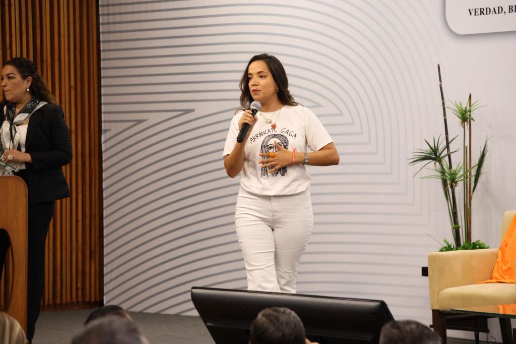 La abanderada naranja inició con una presentación en la que compartió algunos resultados de su función como Senadora en la 62 legislatura, donde participó en 5 comisiones, así como previamente destacó que desde los 18 años ha dedicado su vida al servicio público.