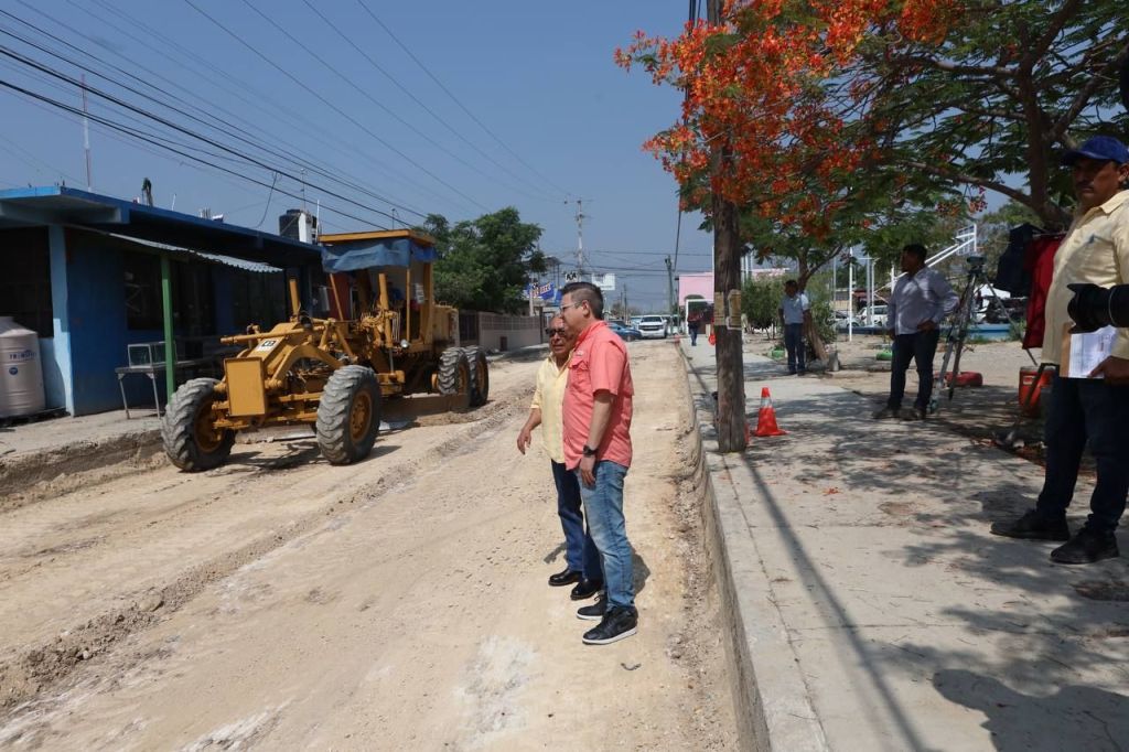 En compañía del titular de Obras Públicas, Eusebio Alfaro Reyna, acudió a la calle Conde de Sierra Gorda, entre boulevard Fidel Velázquez y Puerto de Matamoros, de la colonia Horacio Terán, donde se hacen preparativos para la pavimentación con concreto hidráulico de 1,224 m2.