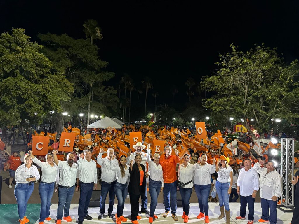 “La grandeza de Miguel Alemán esta en su gente y de la mano con la maestra Elodia, porque yo sí creo, la maestra tiene años entregando su vida y su trayectoria por Miguel Alemán, todos creemos que Miguel Alemán merece buenos gobierno, volver a sonreír y Miguel Alemán merece que la maestra este gobernando en unos cuantos meses; es por eso que les pido que este domingo 2 de junio salgamos todos a votar y pintemos todo fosfo fosfo”, resalto el coordinador de MC.