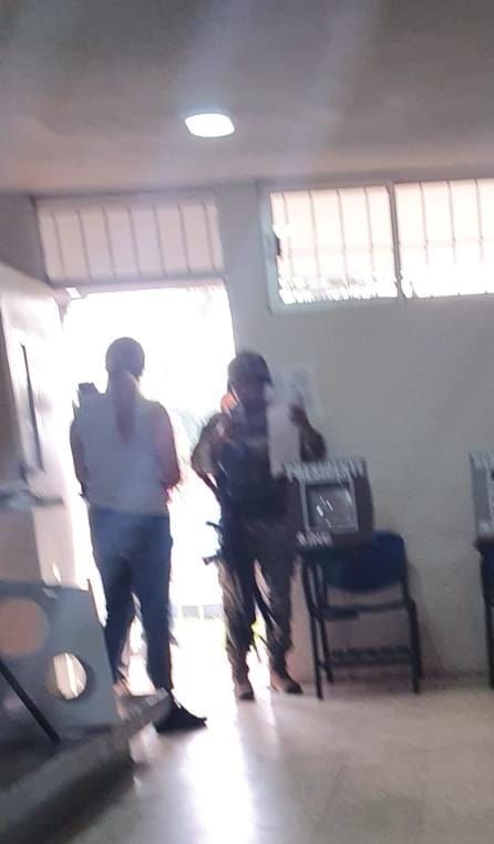 Nuevo Laredo, Tamaulipas, 2 de junio de 2024 .— Personal del Ejercito Mexicano, de la Guardia Nacional y Guardia Estatal ingresaron armados a casillas electorales en esta frontera, atemorizando a los ciudadanos que estaban haciendo fila para emitir su voto.