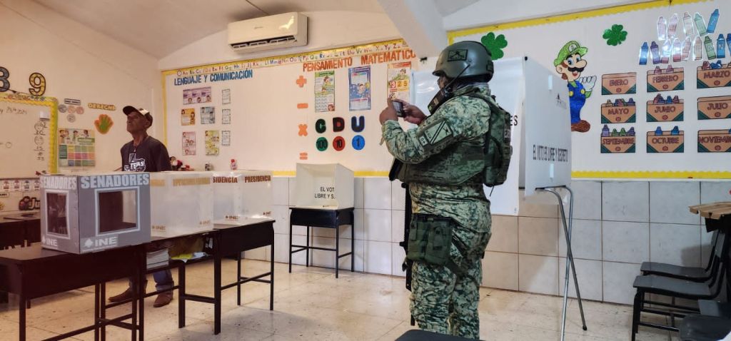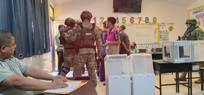 La presencia de militares y de cualesquiera elementos policiacos dentro de las casillas está prohibida. Solo deben dar seguridad perimetral e ingresaran a solicitud del presidente de casilla, de acuerdo a la Ley Electoral.