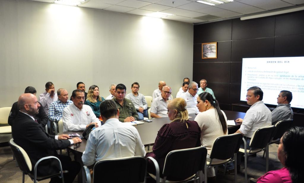 La reunión de evaluación estuvo presidida por el secretario de Recursos Hidráulicos para el Desarrollo Social, Raúl Quiroga Álvarez, acompañado del equipo de trabajo y autoridades representantes de la Secretaría de Desarrollo Urbano y Medio Ambiente, COEPRIS, Secretaría de Educación Pública y gerentes generales de los organismos operadores del agua de los municipios de Victoria, Nuevo Laredo, Miguel Alemán, Altamira, Tampico y Madero.