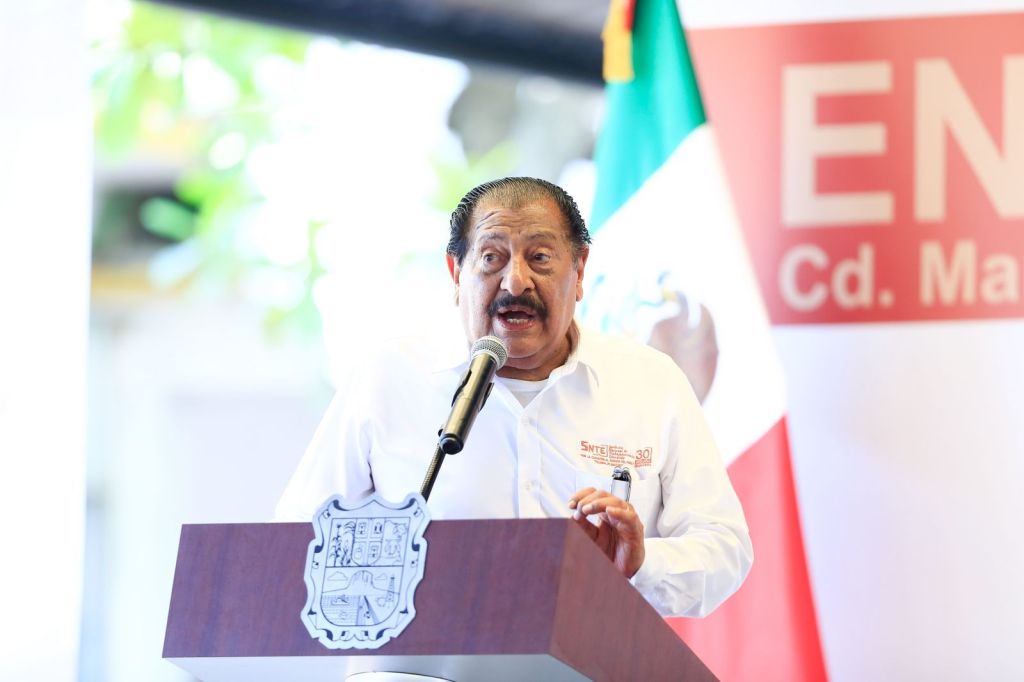 Ante la presencia del secretario general de la Sección 30 del SNTE, Arnulfo Rodríguez Treviño, el gobernador también reconoció el trabajo de los docentes, acciones que, dijo, forman parte de las cuatro áreas principales de la nueva visión de educación, de una transformación que se está dando en el país.
