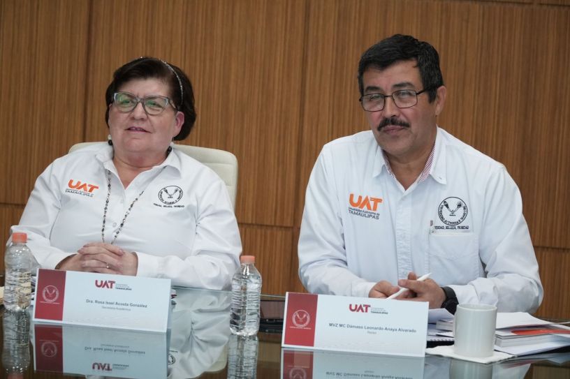 En la sesión a distancia que presidió en el Centro de Gestión del Conocimiento del Campus Victoria, el rector Dámaso Anaya estuvo acompañado por la Dra. Rosa Issel Acosta González, secretaria académica de la UAT, quien expuso los indicadores de educación media superior y superior de la Universidad en relación con el contexto nacional.