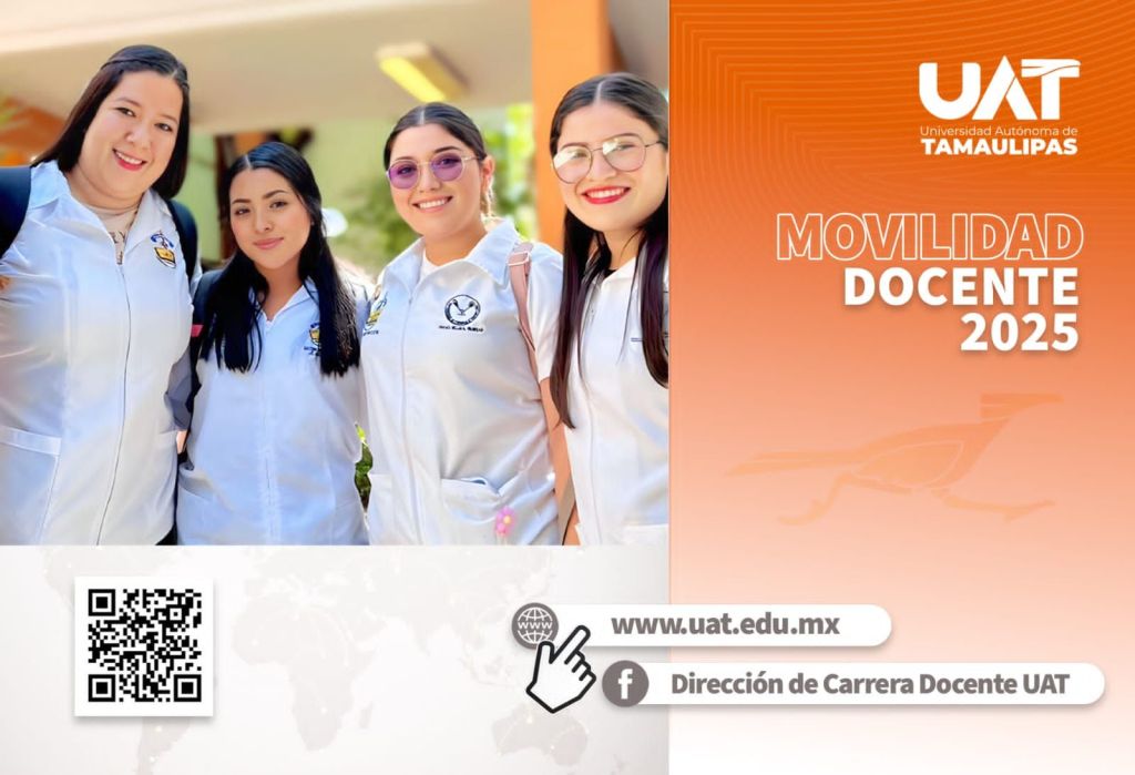 La Universidad Autónoma de Tamaulipas (UAT) invita a su comunidad académica a participar en la Convocatoria Movilidad Docente 2025 para realizar estancias en reconocidas instituciones de educación superior de México y el extranjero.