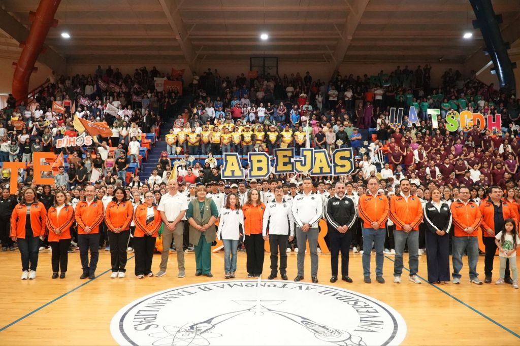 Por otro lado, con la presencia de autoridades universitarias, estudiantes y público en general, el rector entregó material deportivo a las delegaciones, e hizo el saque inaugural de este torneo, que es el último filtro para definir a los selectivos en los deportes de conjunto e individual que representarán a la UAT en las competencias deportivas regionales y nacionales.