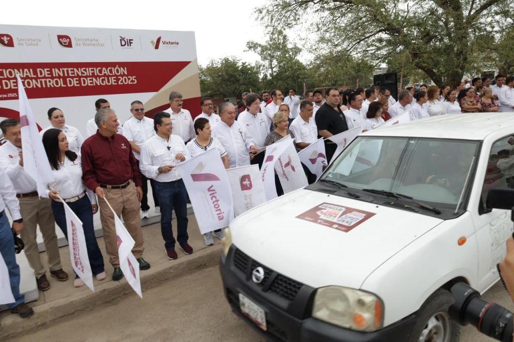 Cd. Victoria, 26 de marzo 2025. – Con el llamado a la ciudadanía a sumarse a las acciones para la prevención del dengue 2025, el presidente municipal de Victoria Eduardo Gattás Báez y el secretario de Salud Estatal Vicente Hernández Navarro, dieron el banderazo a las brigadas de descacharre y eliminación de criaderos del mosco transmisor del virus.