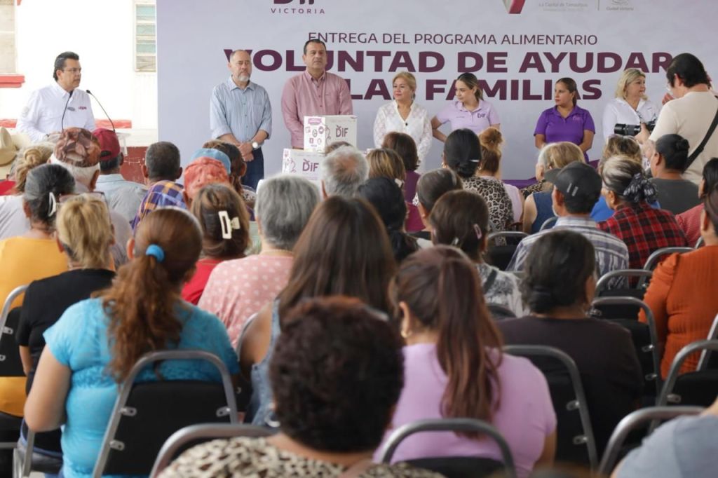 Cd. Victoria, 28 de marzo 2025.– Al afirmar que, en Victoria se trabaja con el gobernador Américo Villarreal y su esposa la Dra. María de Villarreal para transformar con hechos la vida de las familias victorenses, el alcalde Eduardo Gattás Báez y Lucy de Gattás, presidenta del DIF, llevaron la entrega de 800 apoyos alimentarios en el ejido La Misión.