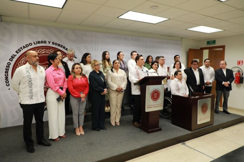 En conferencia de prensa celebrada este jueves, el diputado Humberto Armando Prieto Herrera, presidente de la Junta de Gobierno, emitió un pronunciamiento en nombre del Grupo Parlamentario de Morena y de las representaciones del Partido del Trabajo y del Partido Verde Ecologista de México, con motivo de la reciente implementación de la Reforma Judicial.