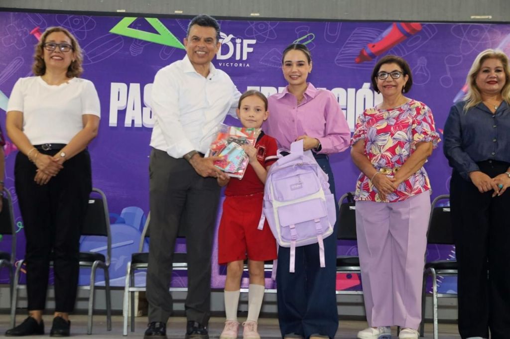 Cd. Victoria, 9 de septiembre 2025. – Para reafirmar que la educación es la mejor inversión que se puede hacer como sociedad, la presidenta del Sistema DIF Lucy de Gattás y el alcalde de Victoria Lalo Gattás entregaron 2,500 kits de útiles escolares recaudados con el programa Pasos por la Educación para estudiantes de escuelas públicas.