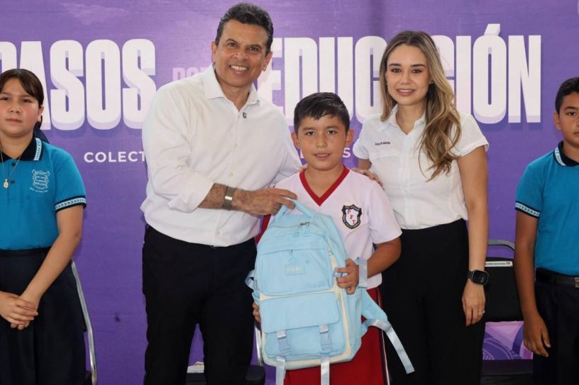 Lalo y Lucy entregaron mochilas y útiles escolares a las y los alumnos de instituciones educativas de nivel básico y bachillerato en el ejido Manuel Ávila Camacho, material donado por personas y empresas socialmente responsables en esta cuarta gran cruzada de solidaridad por la educación.
