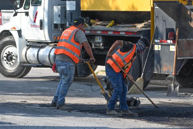 Cd. Victoria, 18 de octubre 2025.- Las brigadas de bacheo que mantiene el gobierno de Victoria no se detienen, y este sábado llevaron a cabo trabajos de rehabilitación de pavimento en tres importantes vialidades de la ciudad.