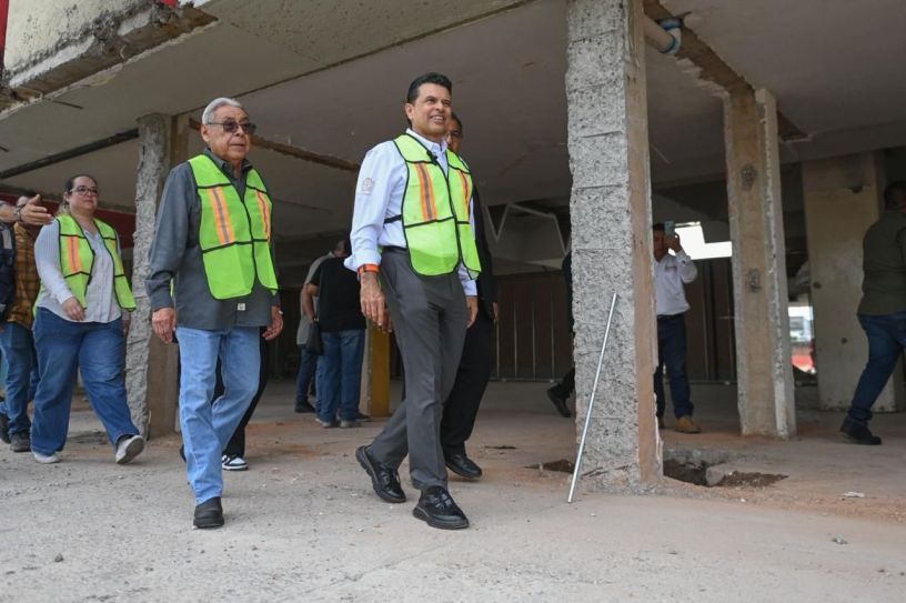 En gira de trabajo, el alcalde Eduardo Gattás Báez visitó este viernes el inmueble, donde junto al gerente José del Refugio Calderón y el secretario de Obras Públicas Eusebio Alfaro Reyna, realizó un recorrido de supervisión del avance de trabajos de la obra.