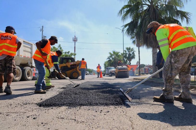 Los trabajos de restauración de pavimento dañado se realizaron del boulevard Práxedis Balboa a calle 16 de septiembre, donde las recientes lluvias y constante tráfico vehicular ocasionaron grave daño en la superficie de rodamiento en ambos sentidos de la avenida.