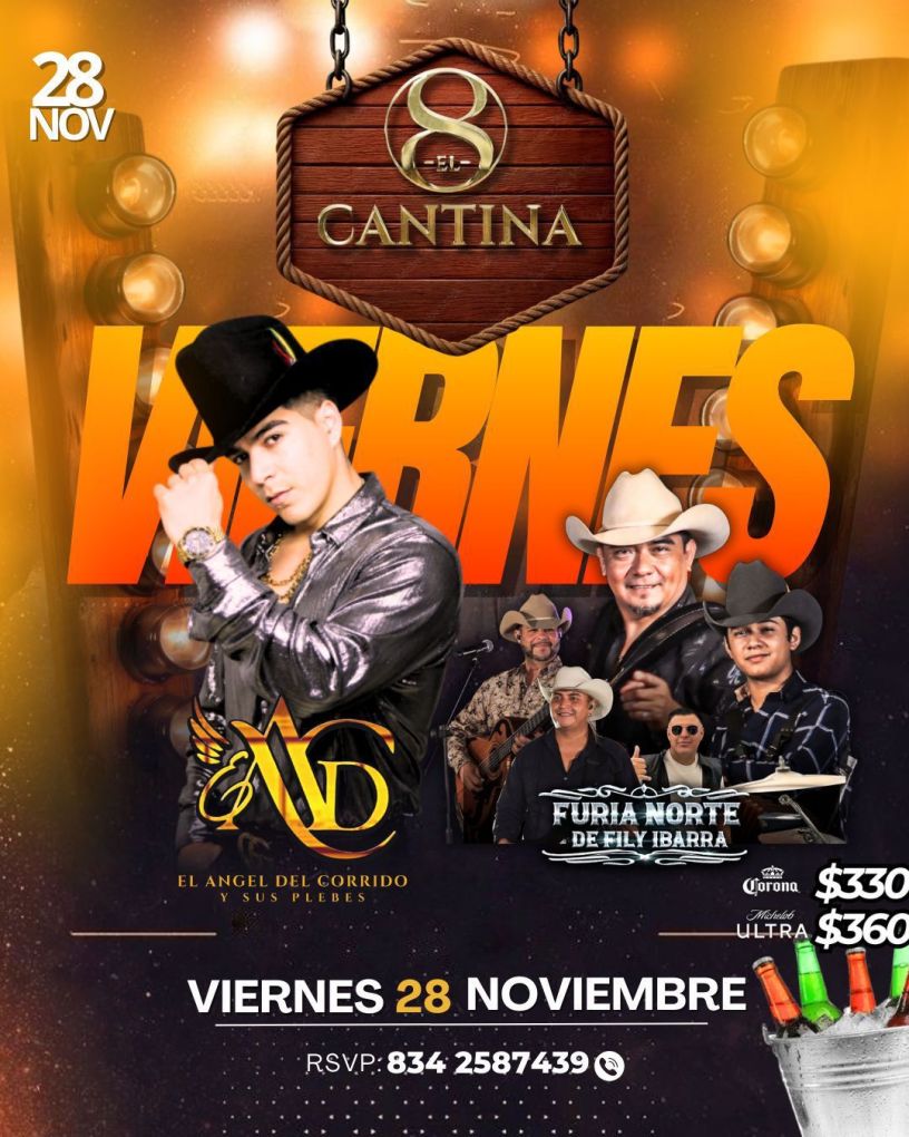 Este VIERNES 28 DE NOVIEMBRE la fiesta se prende en El 8 Cantina con una noche que promete desvelarte: