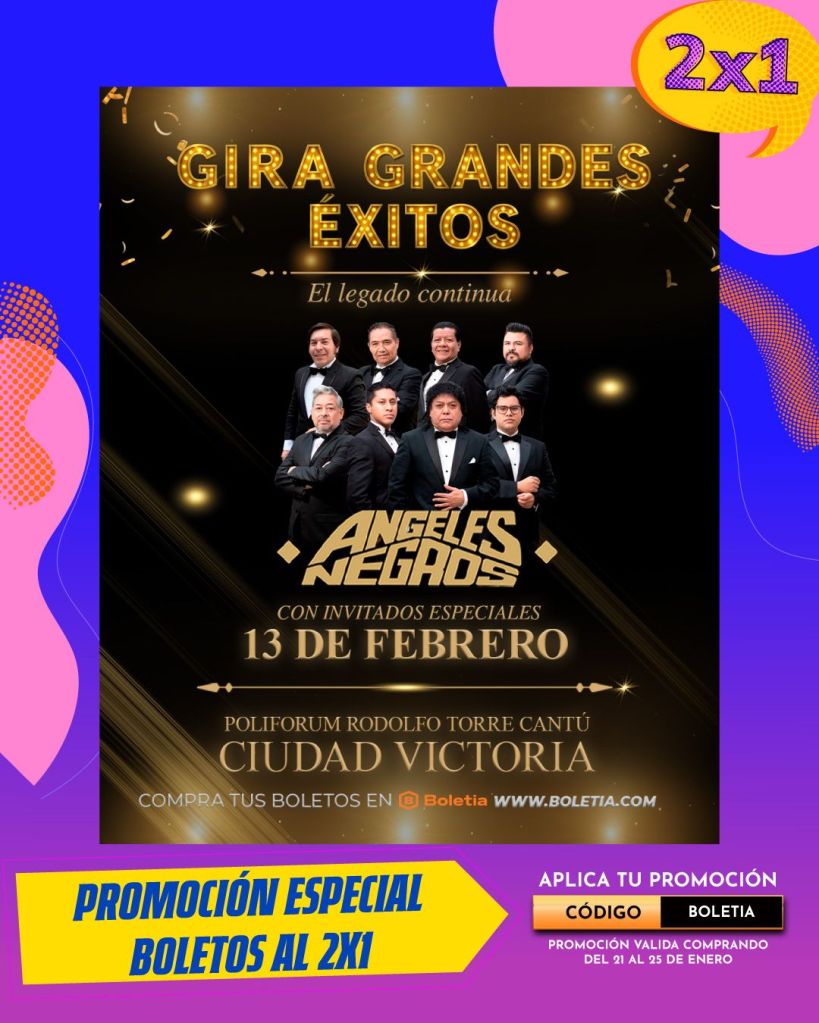 #CDVICTORIA | 🔥𝘼𝙥𝙧𝙤𝙫𝙚𝙘𝙝𝙖 𝙚𝙨𝙩𝙖 𝙜𝙧𝙖𝙣 𝙥𝙧𝙤𝙢𝙤𝙘𝙞𝙤𝙣 ‼️Del 21 al 25 de enero 𝗖𝗼𝗺𝗽𝗿𝗮 𝟭 𝗯𝗼𝗹𝗲𝘁𝗼 🎟️ y #BOLETIA 𝘁𝗲 𝗿𝗲𝗴𝗮𝗹𝗮 𝗲𝗹 𝟮𝗱𝗼 y revive el Romanticismo y la Nostalgia con Los Angeles Negros 🖤🪽en Concierto”. ✨