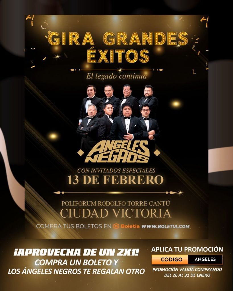 #CDVICTORIA | 🔥𝘼𝙥𝙧𝙤𝙫𝙚𝙘𝙝𝙖 𝙚𝙨𝙩𝙖 𝙜𝙧𝙖𝙣 𝙥𝙧𝙤𝙢𝙤𝙘𝙞𝙤𝙣 ‼️Del 26 al 31 de enero 𝗖𝗼𝗺𝗽𝗿𝗮 𝟭 𝗯𝗼𝗹𝗲𝘁𝗼 🎟️ y #LosAngelesNegros 𝘁𝗲 𝗿𝗲𝗴𝗮𝗹𝗮𝗻 𝗲𝗹 𝟮𝗱𝗼 para vivir todo el Romanticismo y la Nostalgia 🖤🪽en su gran Concierto”. ✨