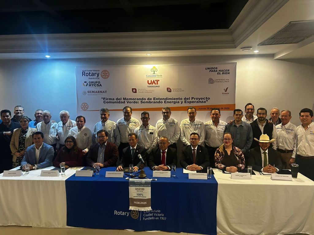 El Club Rotario Ciudad Victoria, como organismo impulsor y eje articulador del proyecto Comunidad Verde, encabezó la firma del Memorando de Entendimiento (MOU) que formaliza una alianza interinstitucional para fortalecer la restauración ambiental urbana, la educación ambiental y la participación comunitaria en la capital del estado.