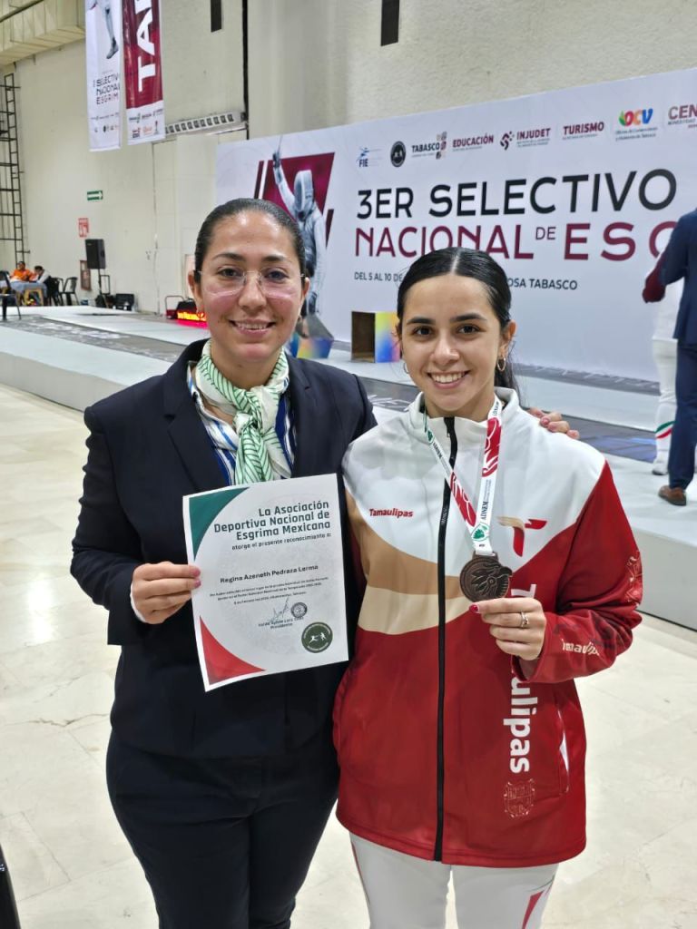 La Universidad Autónoma de Tamaulipas volvió a hacerse presente en el escenario deportivo nacional, luego de que sus representantes, Regina Azeneth Pedraza Lerma y Brandon Alan Romo Beltrán subieran al podio en el Tercer Selectivo Nacional de Esgrima, celebrado en Villahermosa, Tabasco.